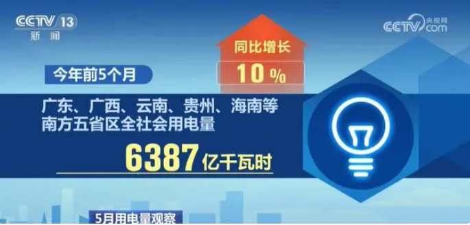 央視網消息:用電量數據一直被看作經濟運行的“晴雨表”,從國家發(fā)展改革委等部門近日公布的數據中可以看到,5月份,我國東、中、西部及東北地區(qū)全社會用電量均實現正增長,電力消費延續(xù)平穩(wěn)較快增長勢頭。